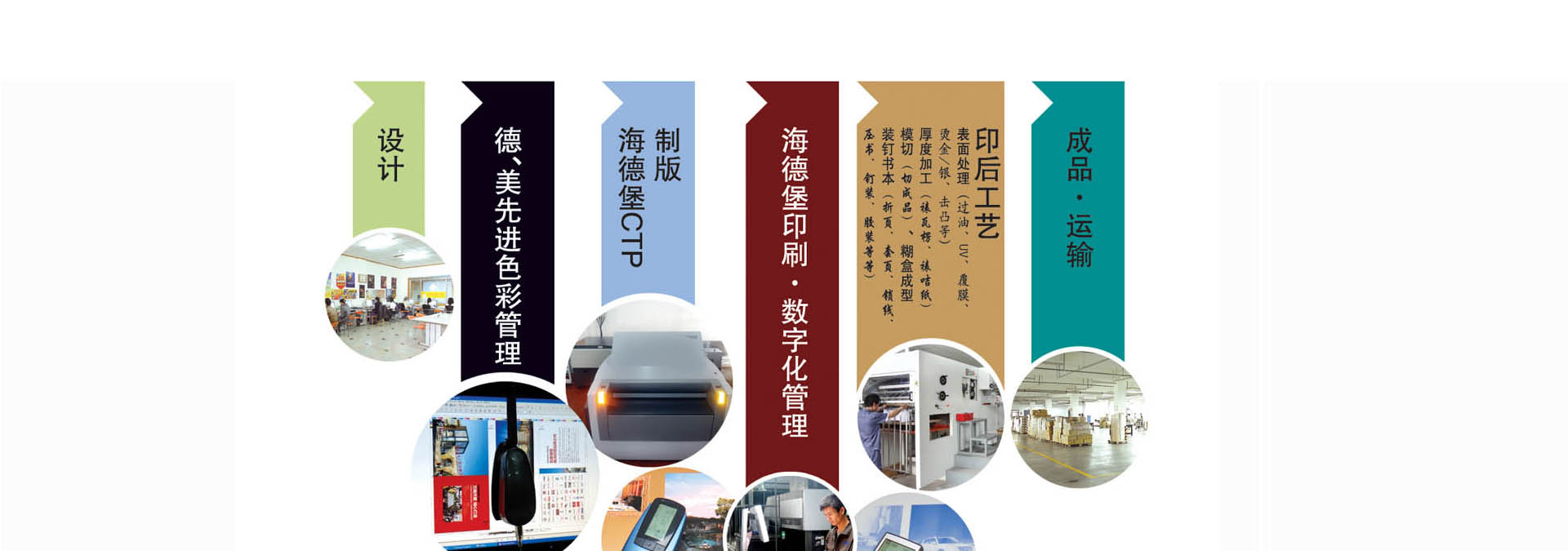 公司傾力引進(jìn)先進(jìn)技術(shù)、設(shè)備與工藝,不斷擴(kuò)充生產(chǎn)能力,提高產(chǎn)品質(zhì)量和開發(fā)先進(jìn)工藝?,F(xiàn)有當(dāng)今世界先進(jìn)的德國(guó)進(jìn)口海德堡多色印刷機(jī)四臺(tái)/北人2108單色機(jī)一臺(tái)/單色六開印刷打碼機(jī)兩臺(tái)/德國(guó)海德堡CTP數(shù)碼制版系統(tǒng)/全自動(dòng)覆膜機(jī)/全自動(dòng)模切機(jī)/全自動(dòng)燙金機(jī)多臺(tái)/UV上光機(jī)/紙面壓光機(jī)/全自動(dòng)裱瓦機(jī)/全自動(dòng)騎馬釘聯(lián)動(dòng)線/全自動(dòng)配頁(yè)機(jī)/橢圓膠訂機(jī)/折頁(yè)機(jī)多臺(tái)/高速裁切機(jī)多臺(tái)/高速鎖線機(jī)多臺(tái)/全自動(dòng)高速糊盒機(jī)/十余臺(tái)精裝書刊配套設(shè)備/十余臺(tái)掛歷、臺(tái)歷流水線設(shè)備等。